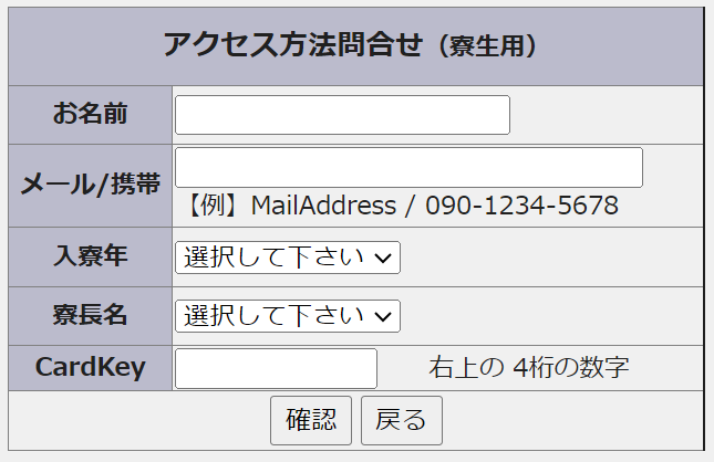 その後 (1) の方法で寮生専用ページに入って下さい。